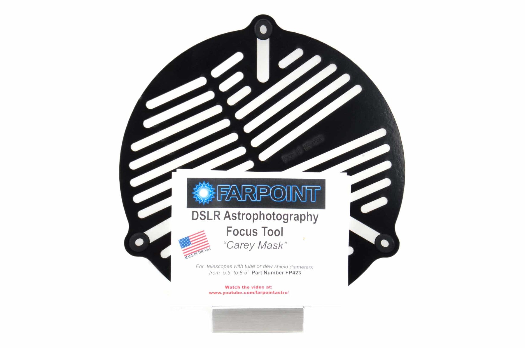 Farpoint Carey Focus Mask - 8.5 Inch to 10.5 Inch Telescopes is an ingenious new way to easily focus a telescope. George Carey, an amateur telescope maker and astronomer from the UK, published a modification of previous focus mask designs to make a much more sensitive version of the device. The method is simple, very intuitive, and the device has universally been named after the inventor: The “Carey Mask”.