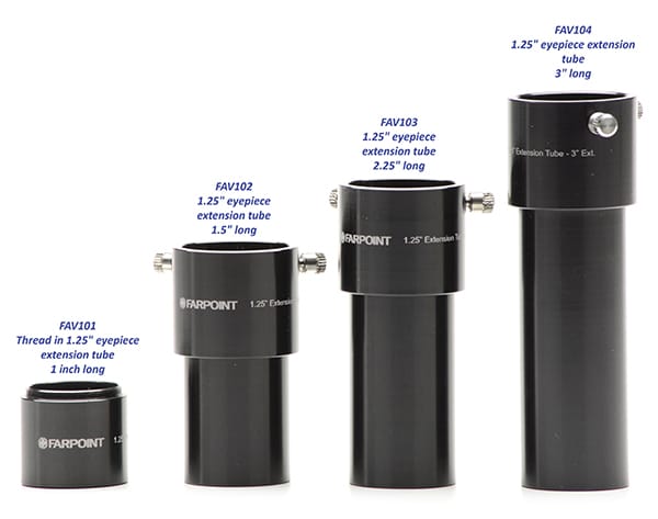 Farpoint Eyepiece Extension Tube - 1 Inch threads into a 1.25″ telescope eyepiece or focus tube to add a 1″ long extension.