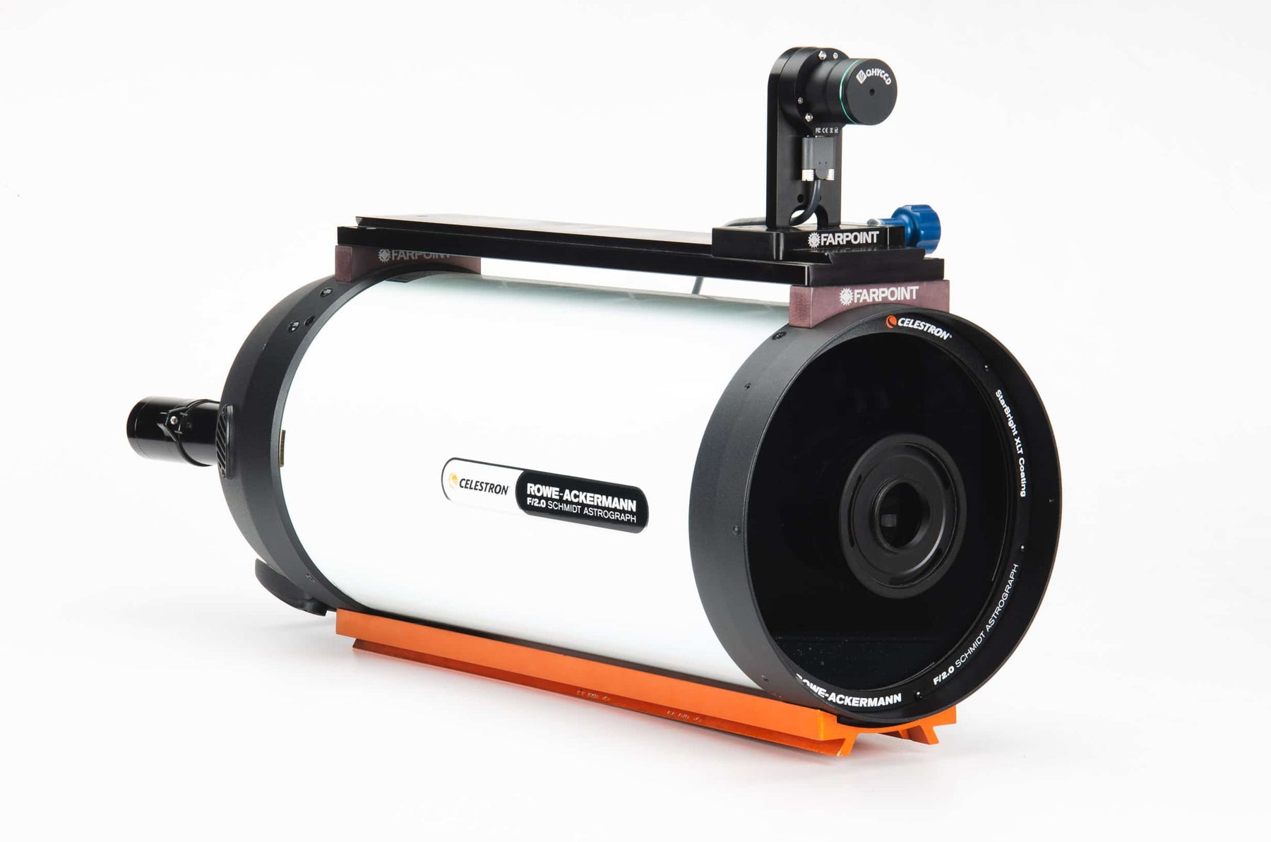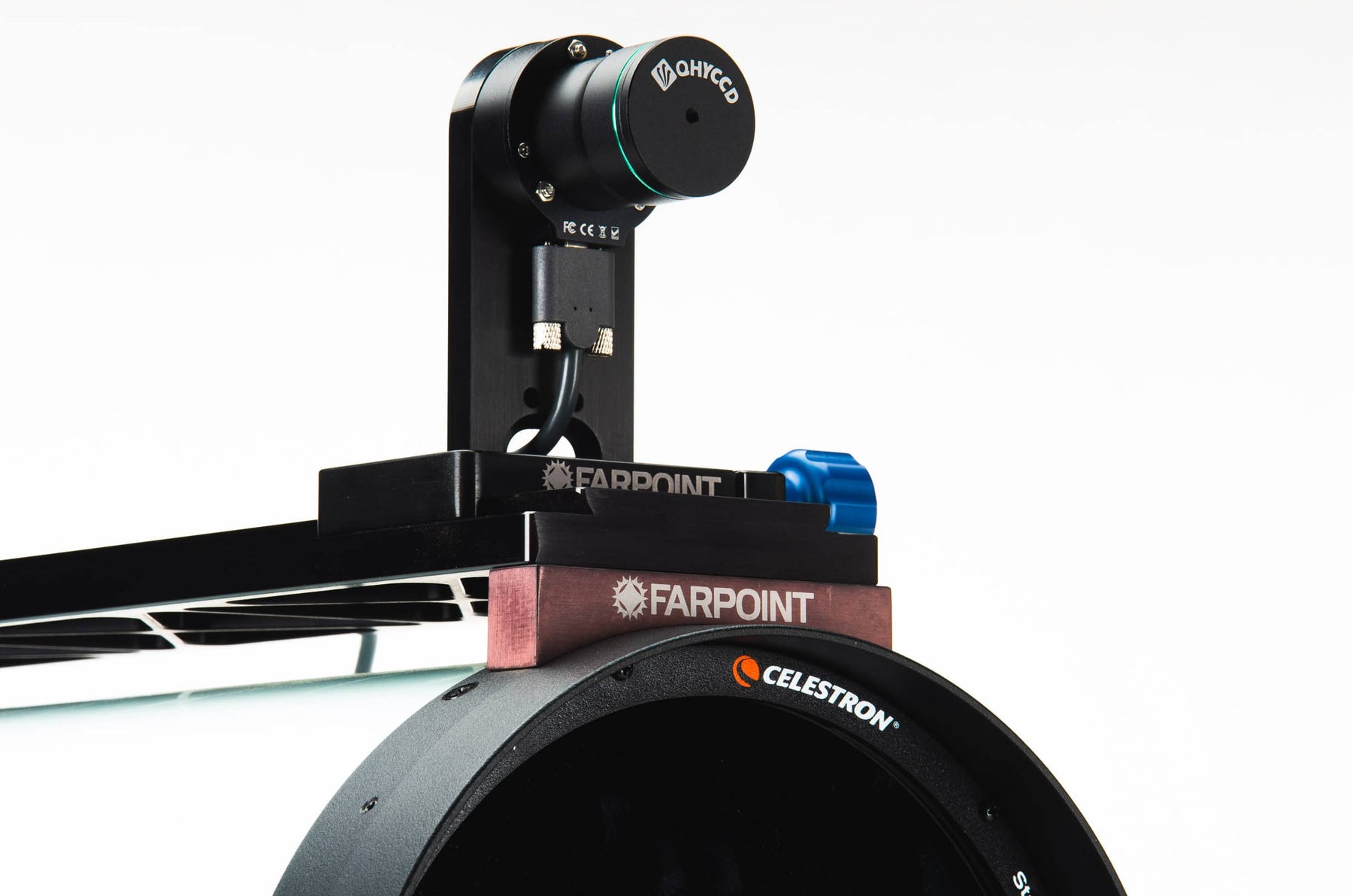 Made with all anodized aluminum, and utilizing our FDA clamp, this mount provides a solid connection with a no-tools mounting process. Its design allows for the cable from the PoleMaster to pass under and through the mount, so it will be out of the way. It can be mounted to the bottom or the top of the telescope, provided there is a Dovetail there.