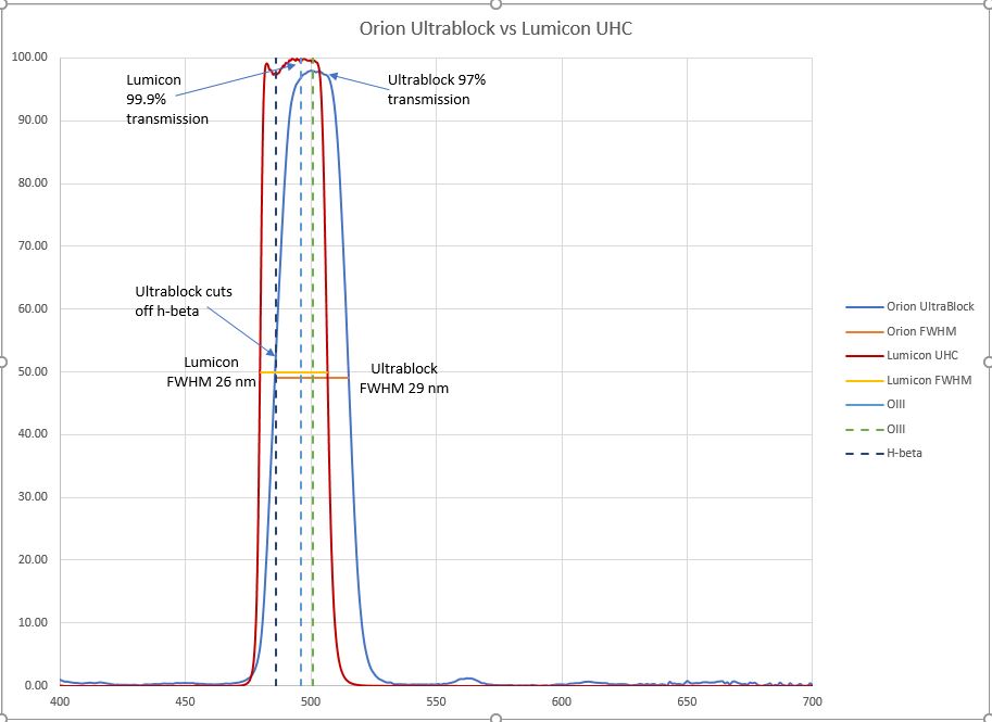 Lumicon filters remain the world’s best and strictest quality control standards are employed throughout the production process. Each Ultra High Contrast Filter is individually inspected and scanned with the percentage of light transmittance of the OIII and H-beta emission lines.