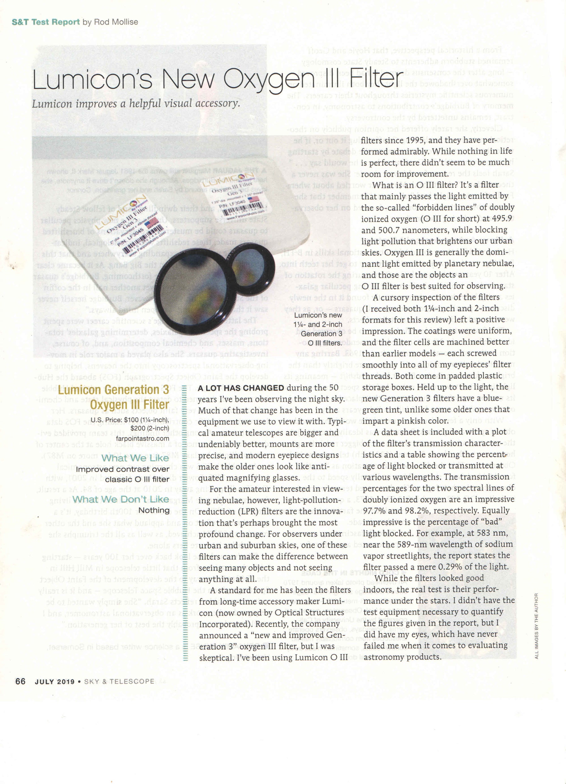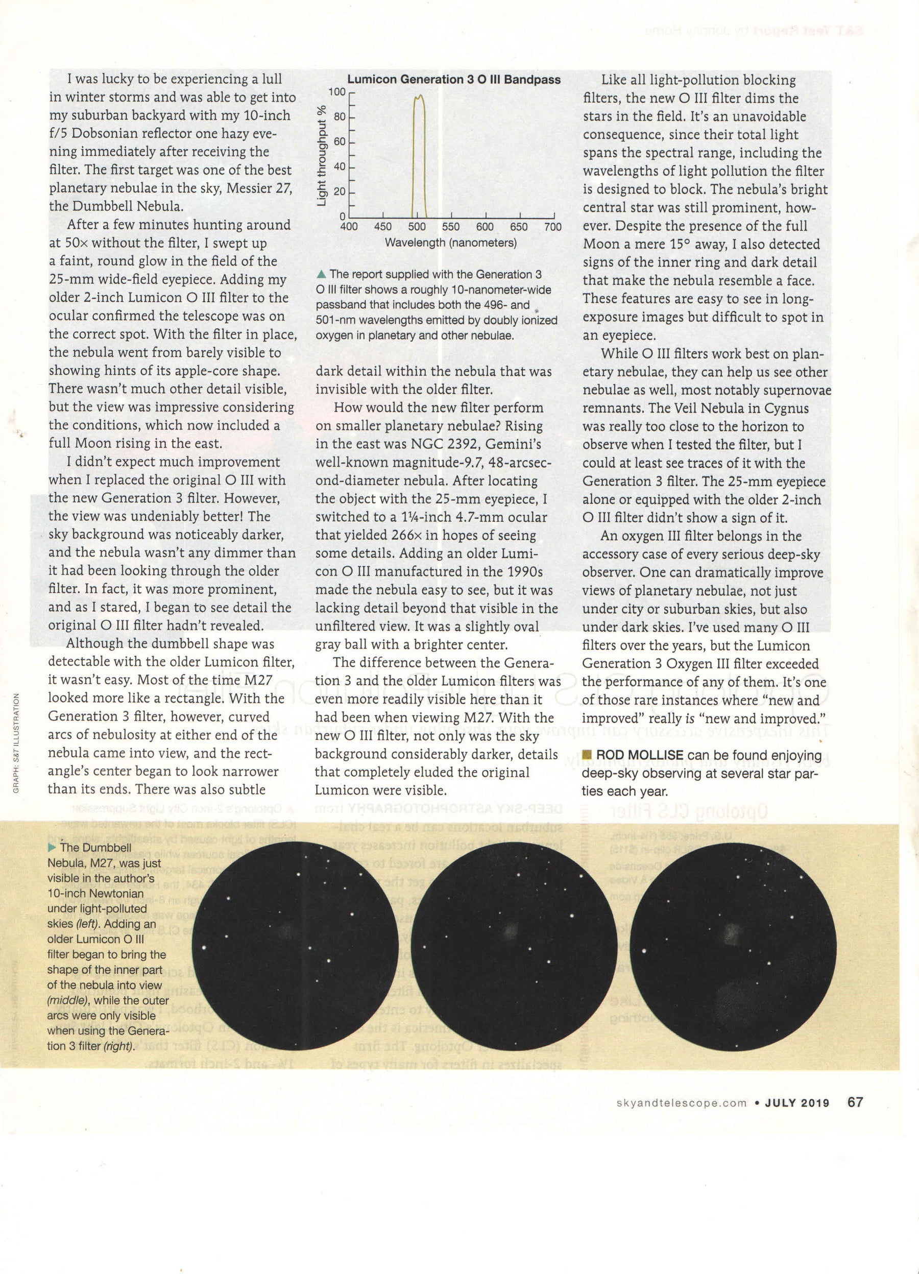 "I've used many O III filters over the years, but the Lumicon Generation 3 Oxygen III filter exceeded the performance of any of them." -Rod Mollise of Sky and Telescope Magazine